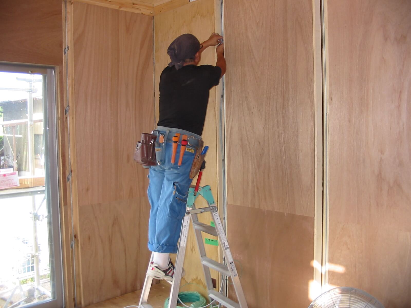 社長の酒井です。 毎週金曜日三重支店に工程打合せに行ってます。 地元の大安町ではなれの建築中のI様邸にお邪魔しました 本日は、稲森電気さんが電気工事をしてくれていました。 シャイなのか、後ろ姿しか撮らせてくれませんでした。 暑い中ありがとうございます。