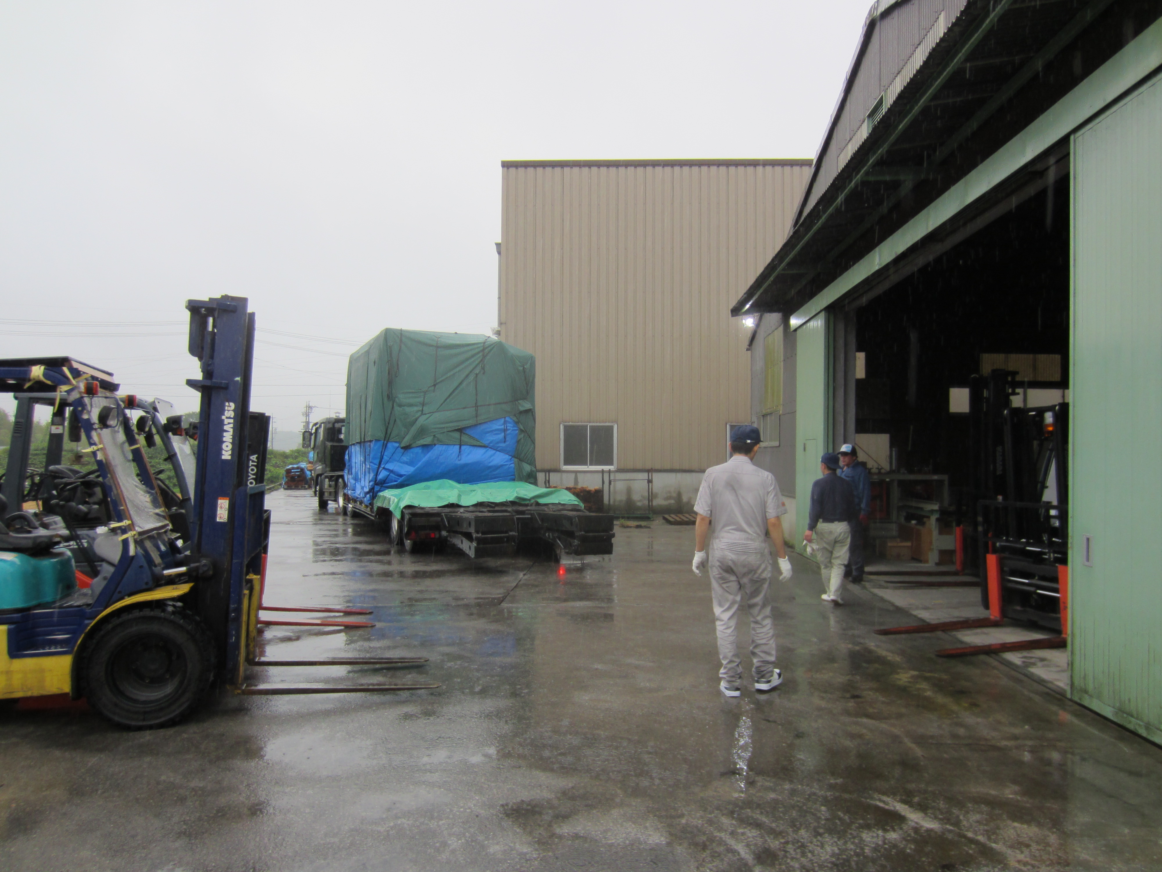 社長の酒井です。6月16~17日は、三重支店の社員の旅行で奈良と上野のモクモクファームに行ってきました。朝一番に三重支店に到着するとすぐに工場内に行きました。実は、この土日の間に内外工業㈱さんの内外工業㈱さんのプレカット機を導入します。雨の中で内外工業の社員さんが一生懸命段取りをしてくれていました。