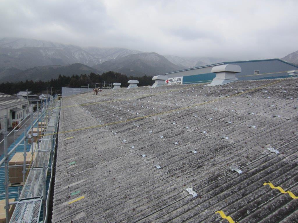 三重の藤原倉庫に太陽光パネル設置工事中です。