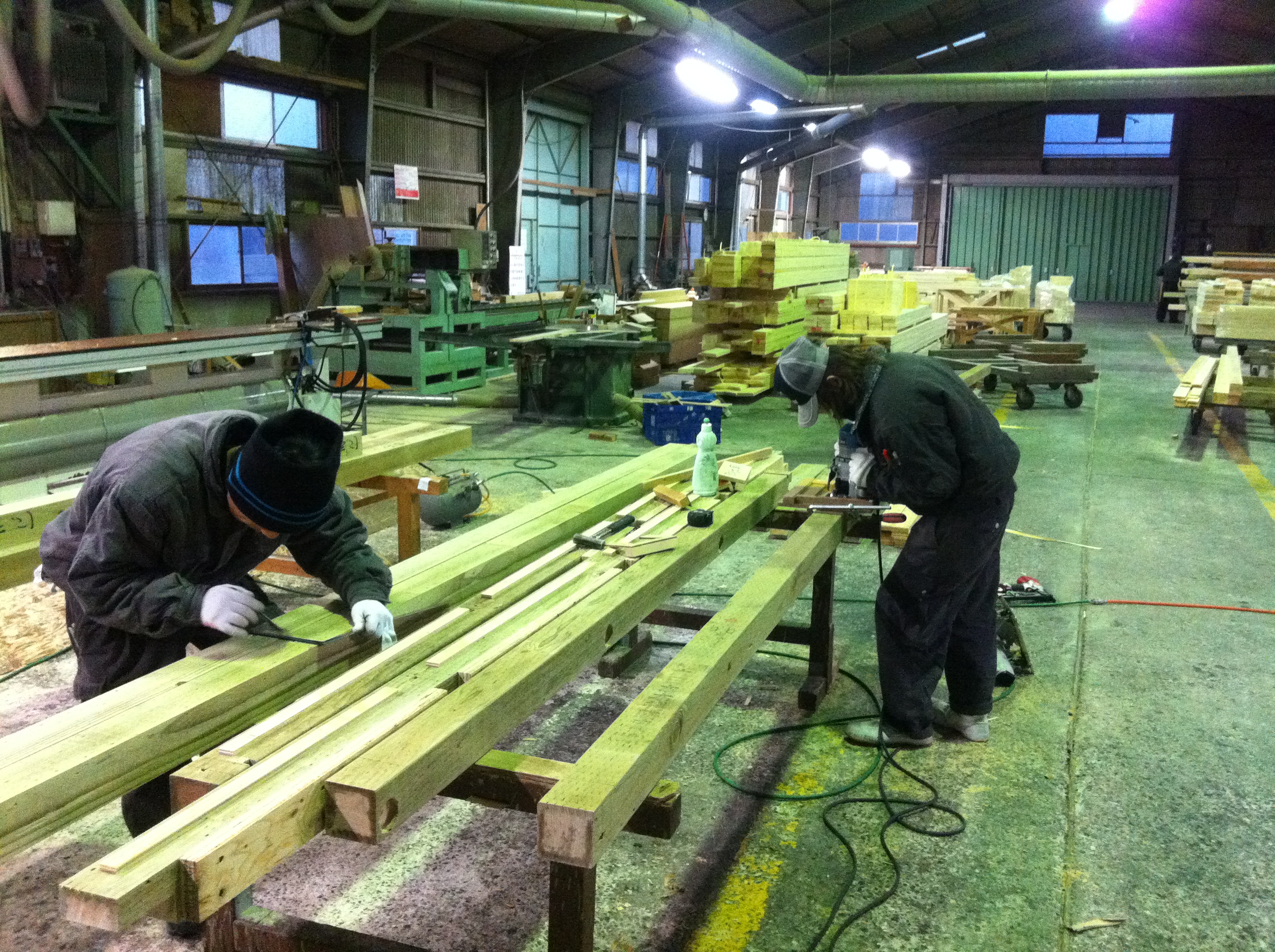 三重の笠井です。 寒い日が続いて毎日凍えながら仕事をしています。 最近少しずつメモを取りながら仕事を覚えてきた有竹君です。 今日も骨組3人仲良く仕事がんばります。 インフルエンザが流行っているみたいなので 体調管理をしっかりします!! みなさんも気をつけて下さい。