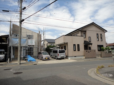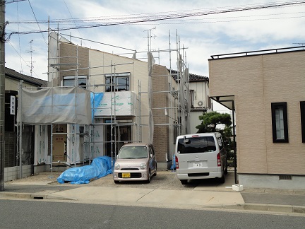 皆さん!こんにちは、ヒノキブンの道下です!(^0^) 今、春日井市N様邸にて別棟新居(はなれ)を建てています! 10月末日には完成します。外観は若い人向けにシャープな片流れタイプです。 写真を添付していますので、見てくださいね!☆彡