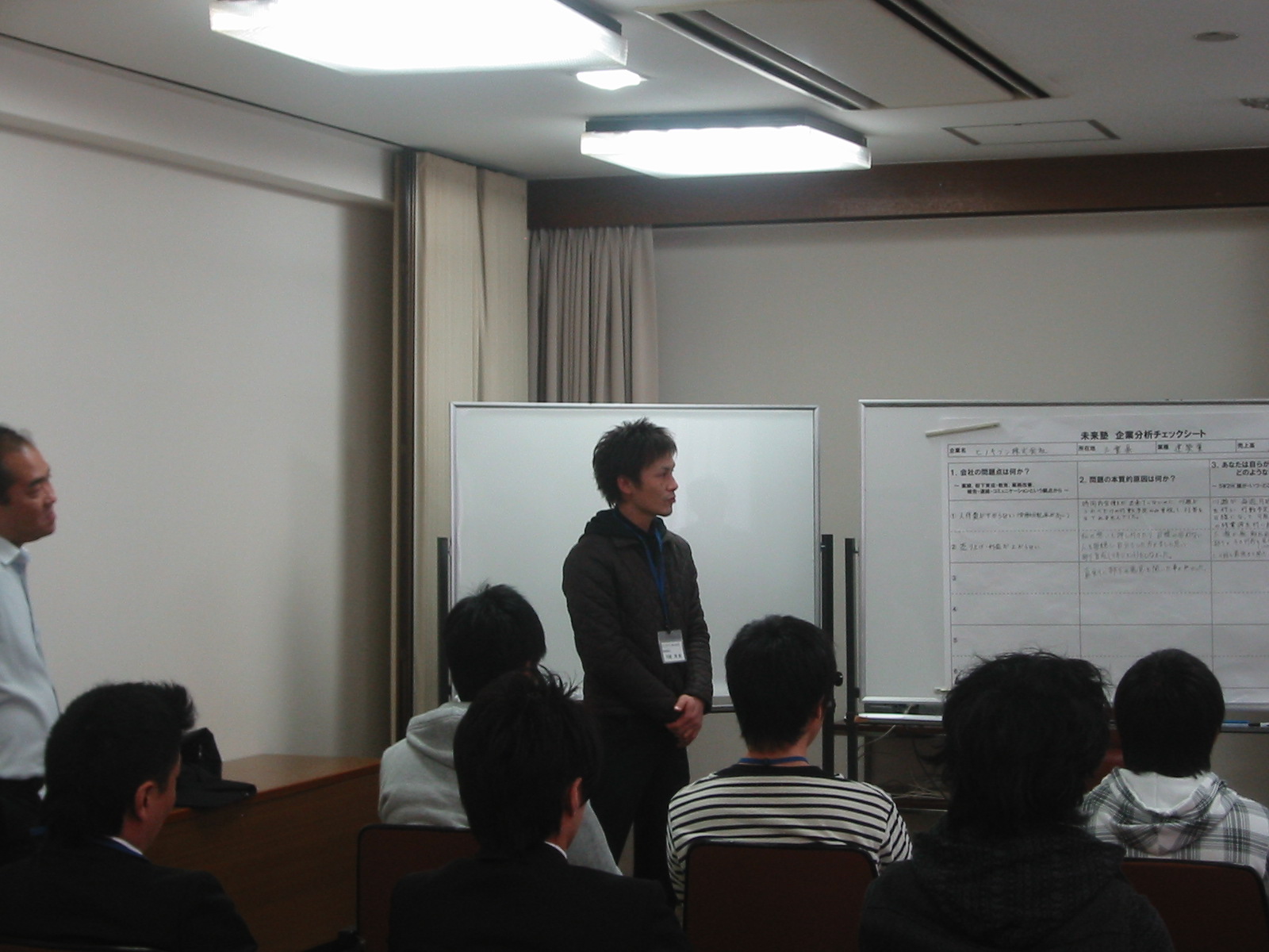 立場上色んな研修、セミナーに参加させて頂きましたが、今回は社長参加型という事で 勉強会に対して少し緊張しました。   「まあ、いつもの当たり前の話を精神論で押しつけるんだなぁ」と思いつつ授業が始まり、 夜の8時ごろに先生からズバッと確信をつかれました。 前から気づいてはいますが人のせいにしたり環境のせいにしたり、 もっとこうすれば良かったのにといろいろ思い当たる事が沢山ありました。 2日目はその事に対して一つ一つ分析し自分が行動し 結果がでるまでのスケジュールを徹底して練り上げ、その内容をみんな(参加者)や社長の前で発表しました。 勉強を大いにさせてもらいましたが1番心に残ったのは 「ヒノキブン」て本当に良い会社だなぁ、でした。 以上 大瀧 ※もう1人は川瀬課長です。