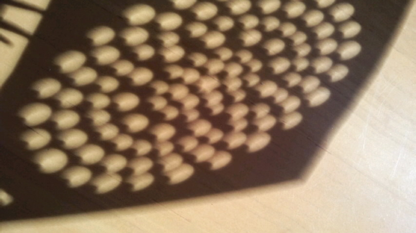 三重支店谷渕です。 皆様先日の日食はご覧になりましたか? 私は、早起きして準備万端整えじっくり観察いたしました。 いやー神秘的と申しますか、とにかく『すっげー\(◎o◎)/!』 っていう感じで、きれいでいたね~。 前日のテレビで言っていたので、やってみました。 光の加減も日食チックになっているのが解りますか? 次の金環日食は、見られないだろうと思いしっかり楽しみました。 「仕事もそれぐらい頑張ってやらんか!」 という天の声が聞こえそうですが・・・(^^ゞ 早起きした割に、日食のパワーをもらったせいか その日は一日テンション高めでした。