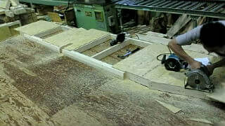 三重工場の伊藤(徳)です。 今回は自分の制作担当している製品を紹介したいと思います。 写真は妻壁といって、屋根の形どった外壁です。 今日作ったのは寄棟用なので躯体完成時には見えなくなりますが、 屋根を支える重要な部分です。