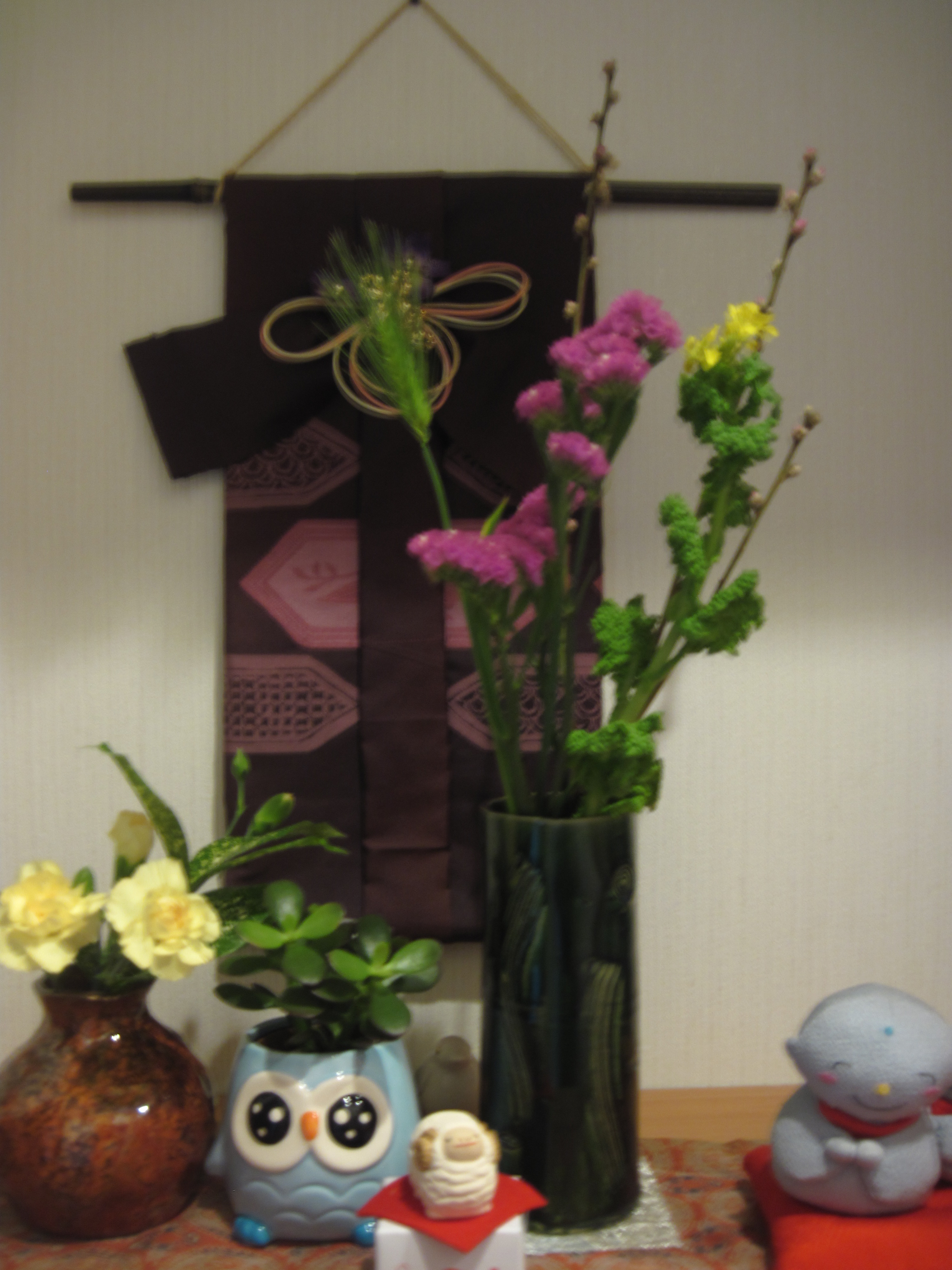 第2営業部  酒井です。     2月は、インフルエンザが猛威をふるい、寒い日もまだ続いていますが、お元気ですか。 もうすぐ3月 を迎え、季節も春になり、また会社にもフレッシュ新入社員を迎えます。とても楽しみにしてます。 私の家も昨年2階をリフォームいたし、2世帯になりました。 1階は、和風  2階は、洋風にし 生活空間が違いますが、その中で2世帯楽しく過ごせたらと思います。 玄関に入り明るくなるようお花をかざりました。